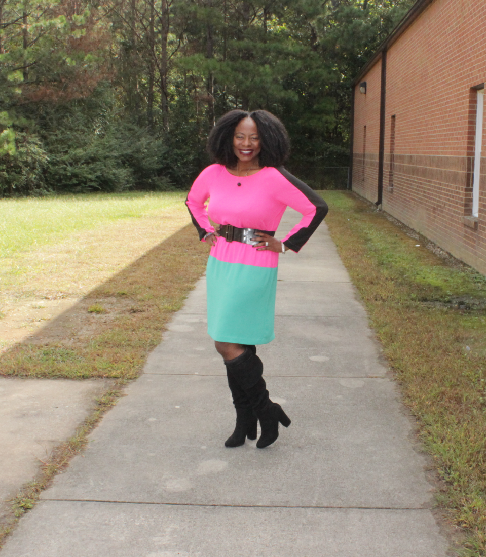 The weather in Atlanta has been nothing but rain and little sunshine but this color block dress sure added some spark to these rainy days. Scored this while thrifting in San Diego, California. Well, actually my thrift sister Keren found this and I kind of made it mine. LOL!